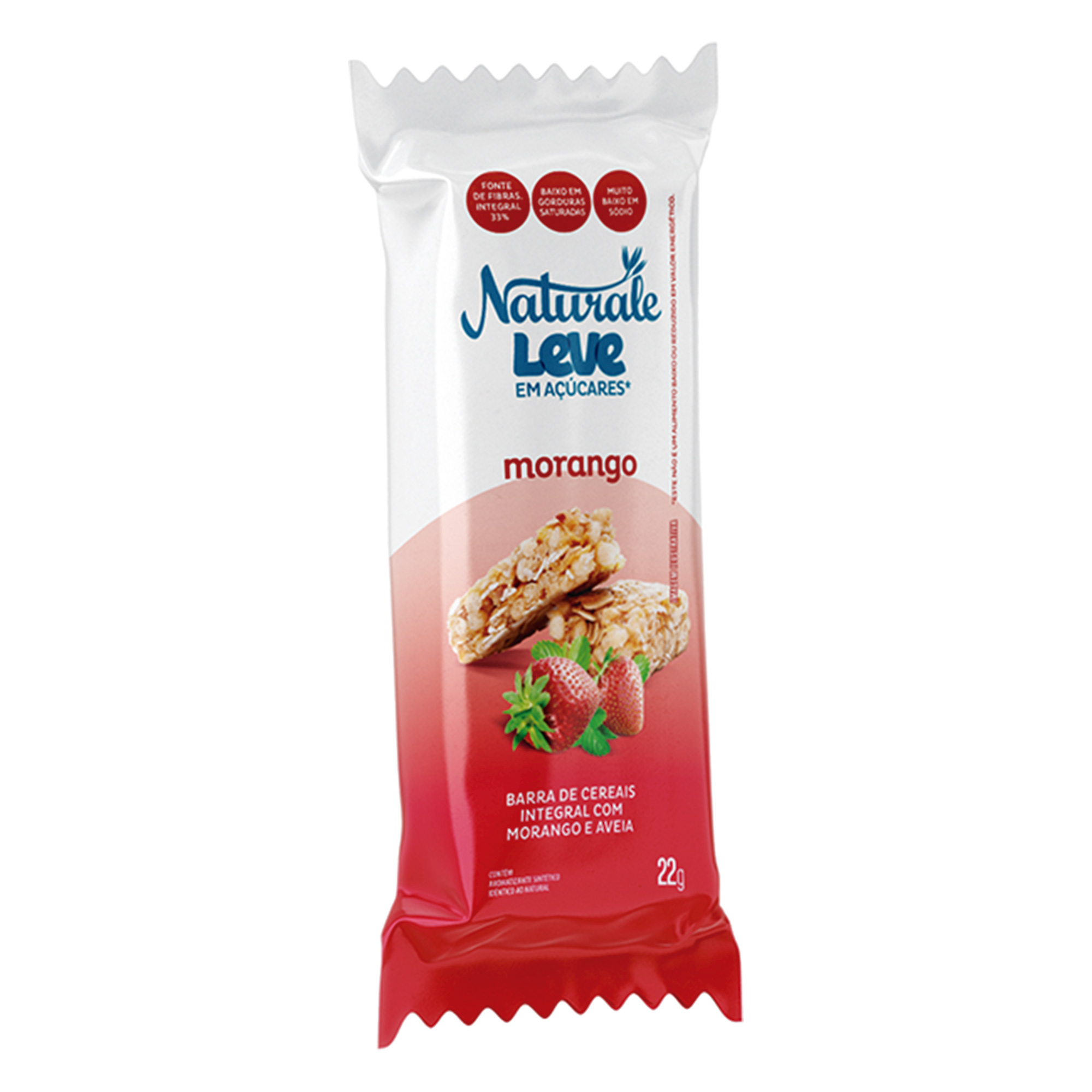 Aveia em flocos integral, maltodextrina, polidextroses, flocos de arroz, flocos de arroz vermelho, uva-passa preta, gordura vegetal de palma, flocos de milho, morango desidratado, quinua em flocos, umectante xarope de sorbitol, estabilizante goma acácica, antioxidante lecitina de soja, aromatizantes, conservantes ácido sórbico e sorbato de potássio, acidulante ácido cítrico, corante carmins e edulcorante sucralose.