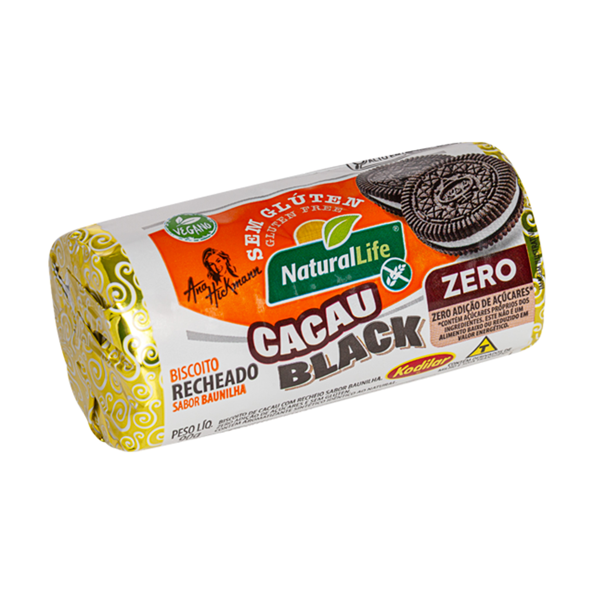 O Biscoito Cacau Black é crocante e tem um delicioso recheio de baunilha.