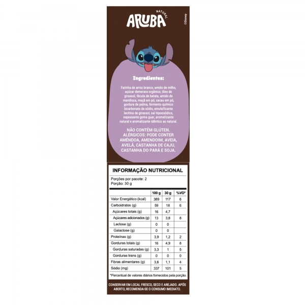 BISCOITO SEM GLÚTEN SEM LACTOSE KIDS STITCH DE CHOCOLATE 60G ARUBA