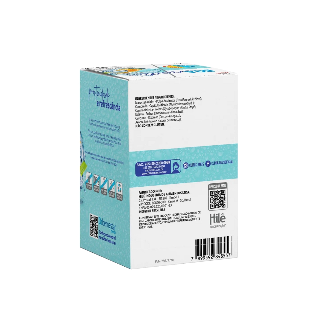 INGREDIENTES: Maracujá-mirim (Passiflora edulis Sims); Camomila (Matricaria recutita L.); Capim-cidreira (Cymbopogon citratus Stapf); Estévia (Stevia rebaundiana Bert); Cúrcuma (Curcuma longa L.); Aroma idêntico ao natural de maracujá. NAO CONTÉM GLÚTEN.