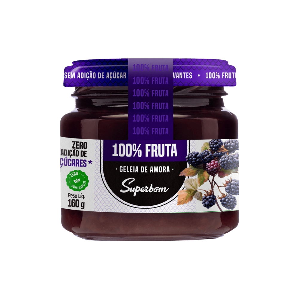 Sabor intenso e natural para o seu dia! A Geleia de Amora Superbom é feita exclusivamente com amora e suco de maçã concentrado, sem adição de açúcar, corantes ou conservantes. Uma opção saudável e deliciosa para quem valoriza ingredientes naturais e qualidade no café da manhã ou nos lanches.