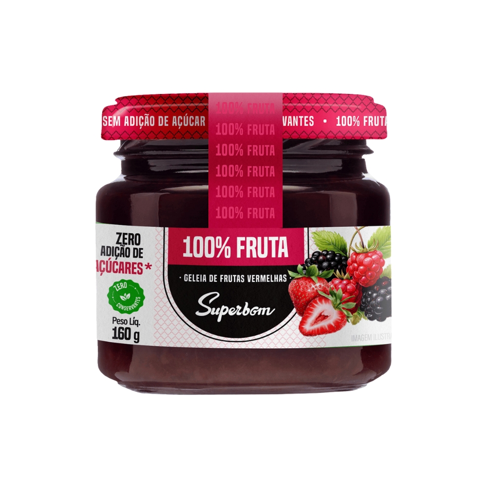 Sabor intenso e natural para o seu dia! A Geleia de Frutas Vermelhas Superbom é feita exclusivamente com morango, amora, framboesa e suco de maçã concentrado, sem adição de açúcar, corantes ou conservantes. Uma explosão de sabor e saúde em cada colherada!