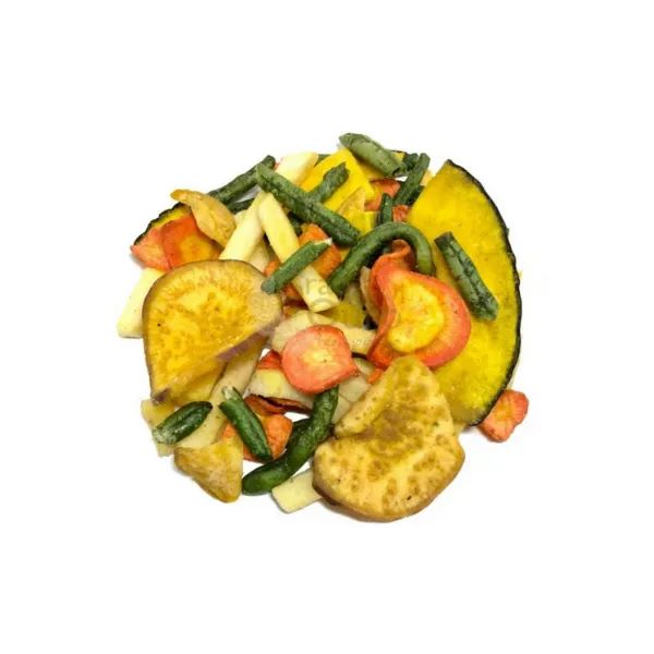 Opção versátil: existem muitas variedades de chips de vegetais frispy disponíveis, incluindo beterraba, abóbora, batata-doce, cenoura, couve e muito mais, tornando-os uma opção versátil para adicionar ao seu lanche ou refeição.
