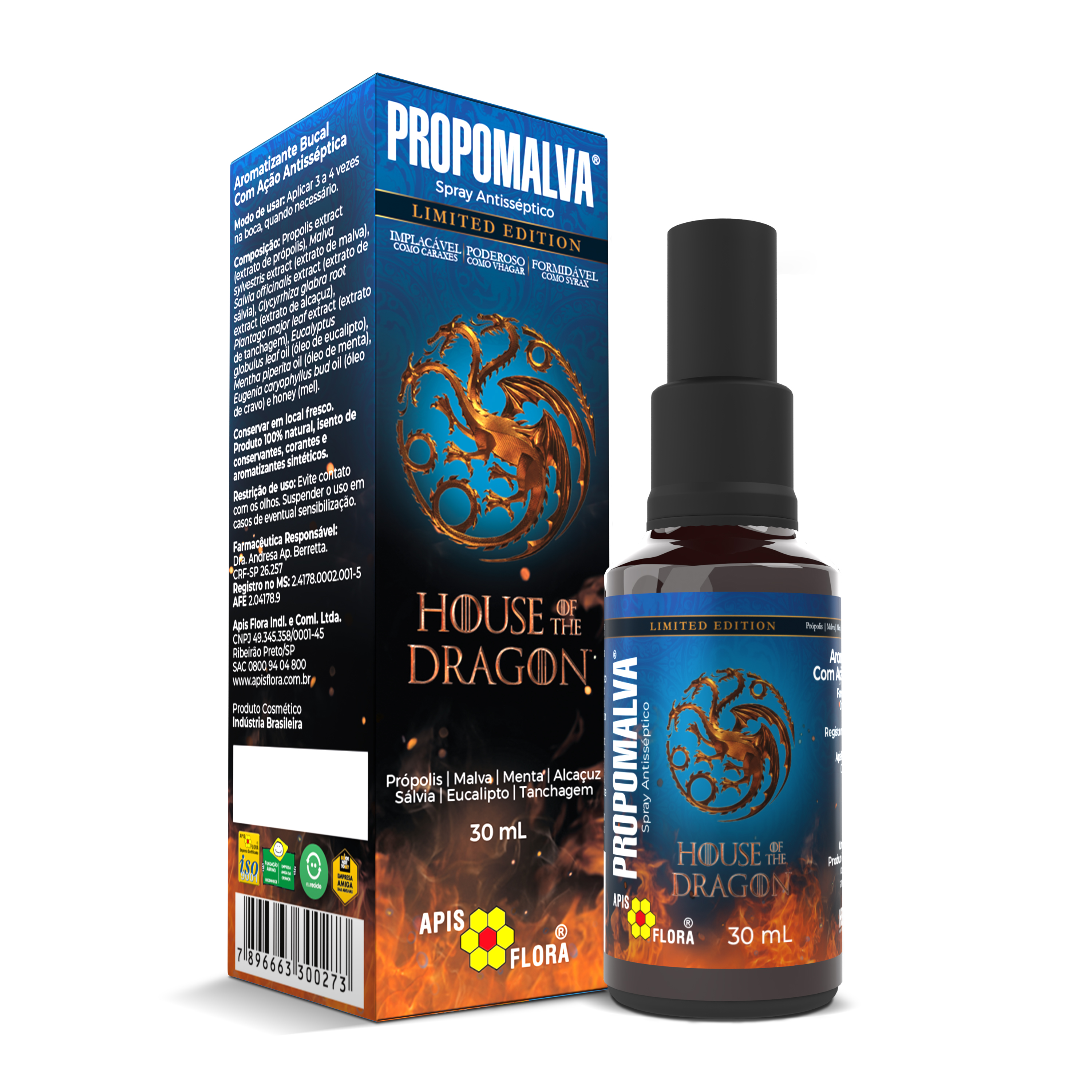 PROPOMALVA® Spray foi desenvolvido após minuciosa pesquisa da Apis Flora, combinando de forma eficaz o extrato de própolis e mais sete ativos vegetais de eficácia comprovada por testes em renomados laboratórios de pesquisa. PROPOMALVA® Spray apresenta ação antisséptica e hidratante, atuando nas principais afecções da boca e garganta.