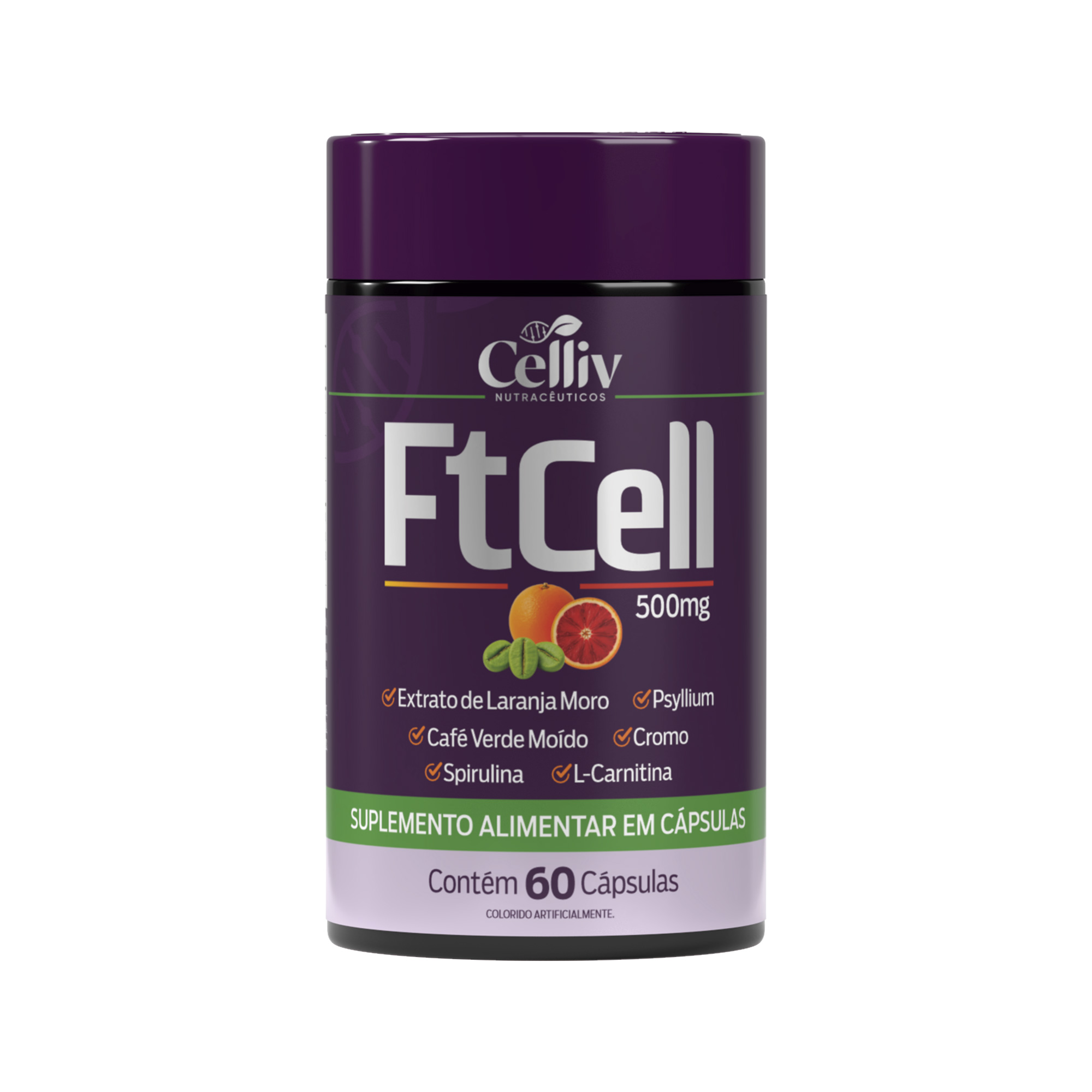 SPIRULINA, PSYLLIUM, L-CARNITINA, LARANJA MORO, CROMO E CAFÉ VERDE (FTCELL) 60CPS - CELLIV