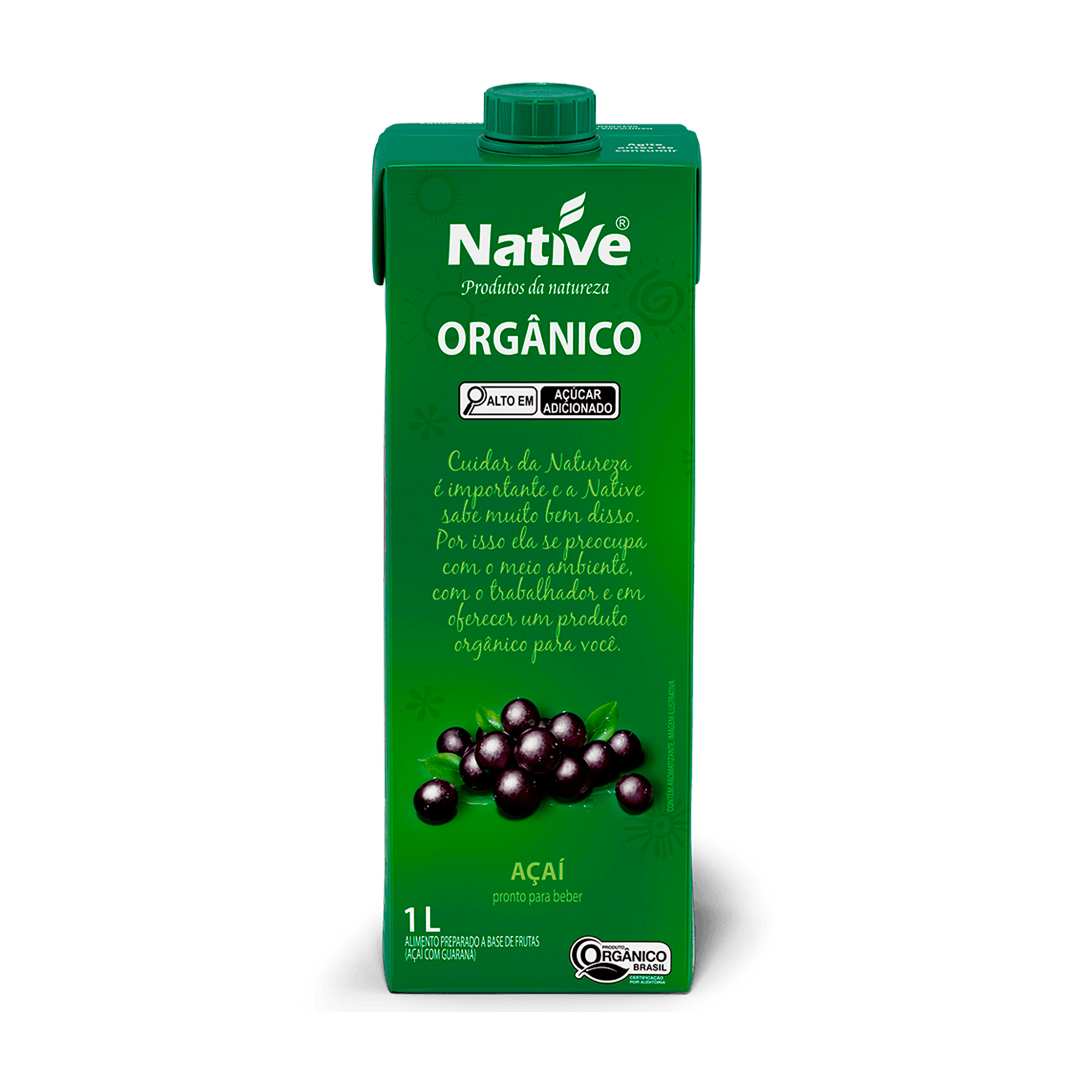 O sabor peculiar do açaí e suas propriedades antioxidantes são as principais características da bebida de Açaí com Guaraná Orgânico Native. Desenvolvida com frutas apreciadas e nativas em nosso país, essa bebida concentrada preserva características nutricionais importantes, como vitaminas C e E, além de sais minerais, sendo uma excelente opção para quem pratica esportes, pois possui um bom valor energético.