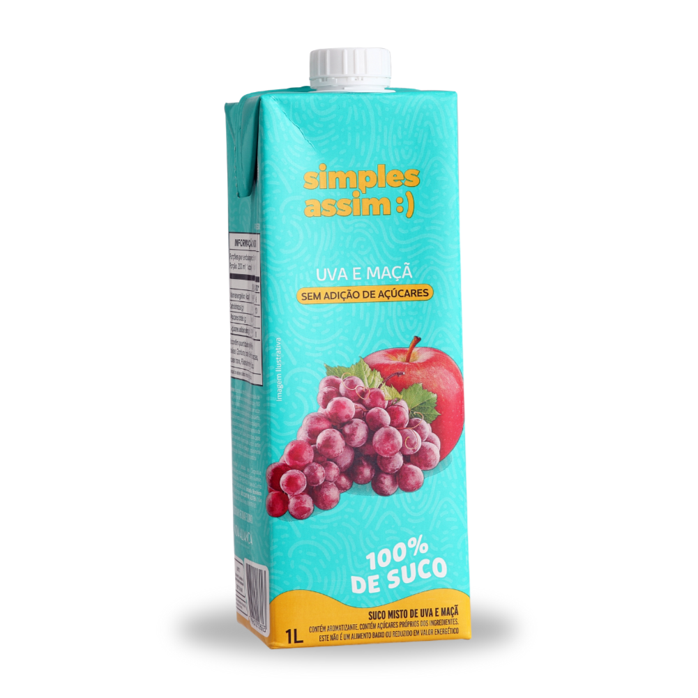 O suco Simples Assim sabor Uva e Maçã é 100% frutas sem adição de açúcares. Uma combinação deliciosa que oferece uma explosão de sabor frutado em cada gole, uma escolha refrescante e saudável para acompanhar qualquer momento do seu dia.